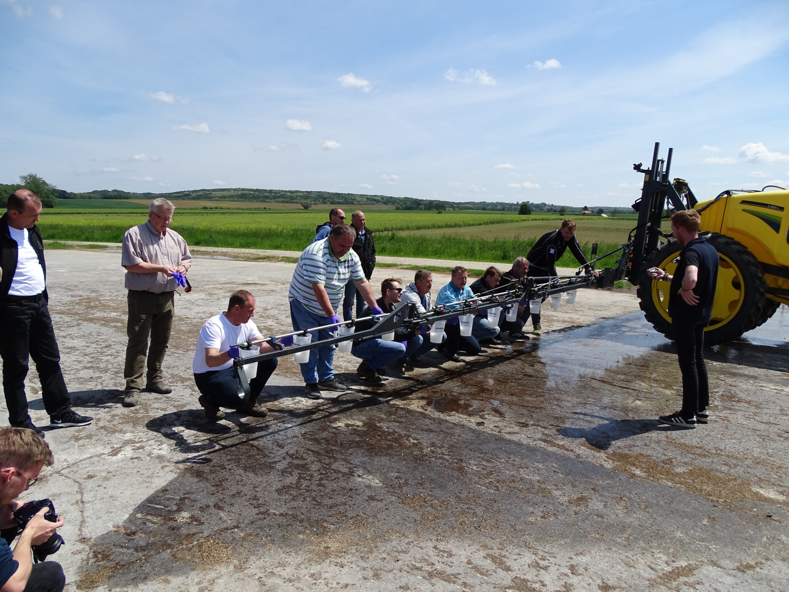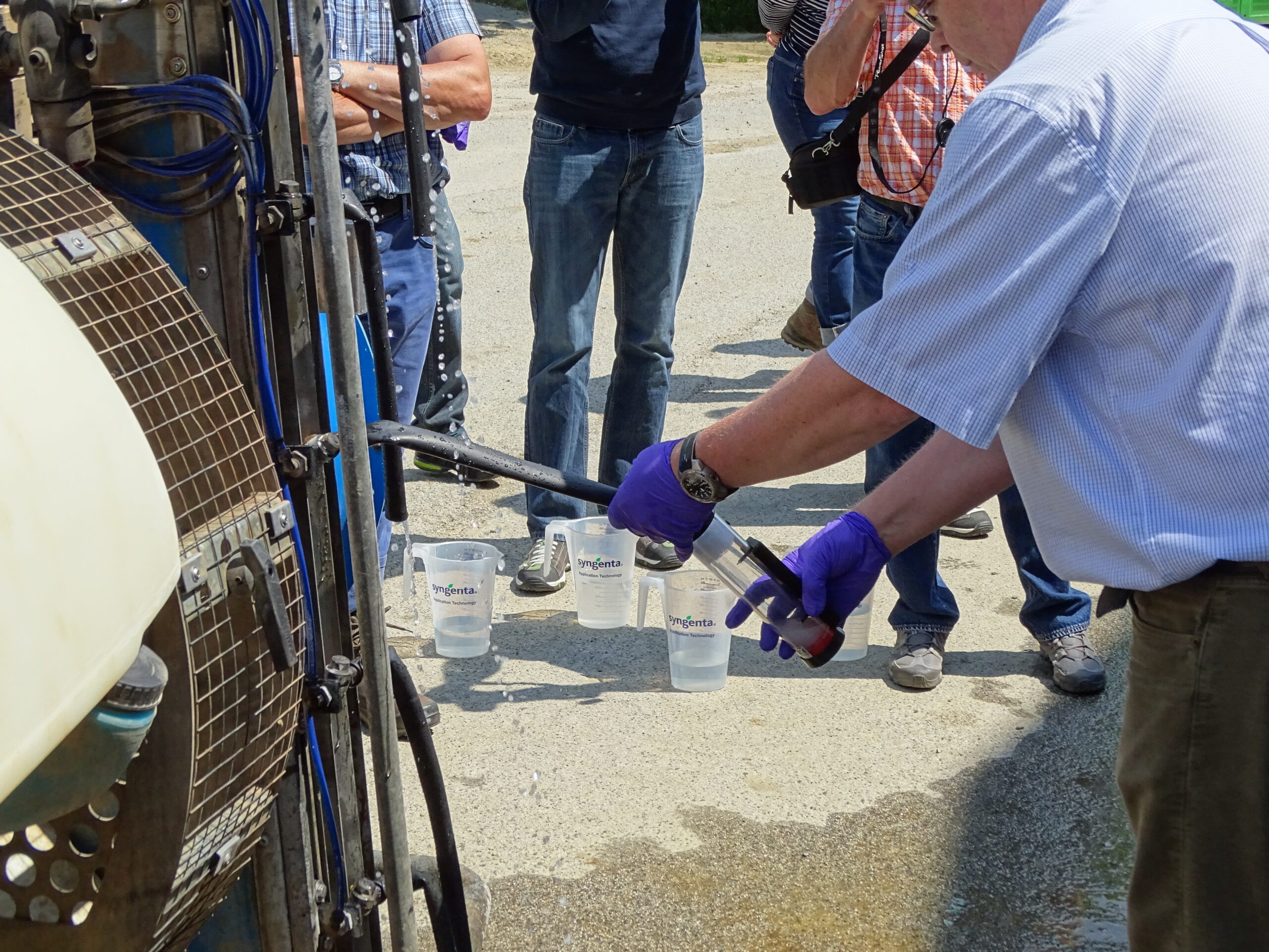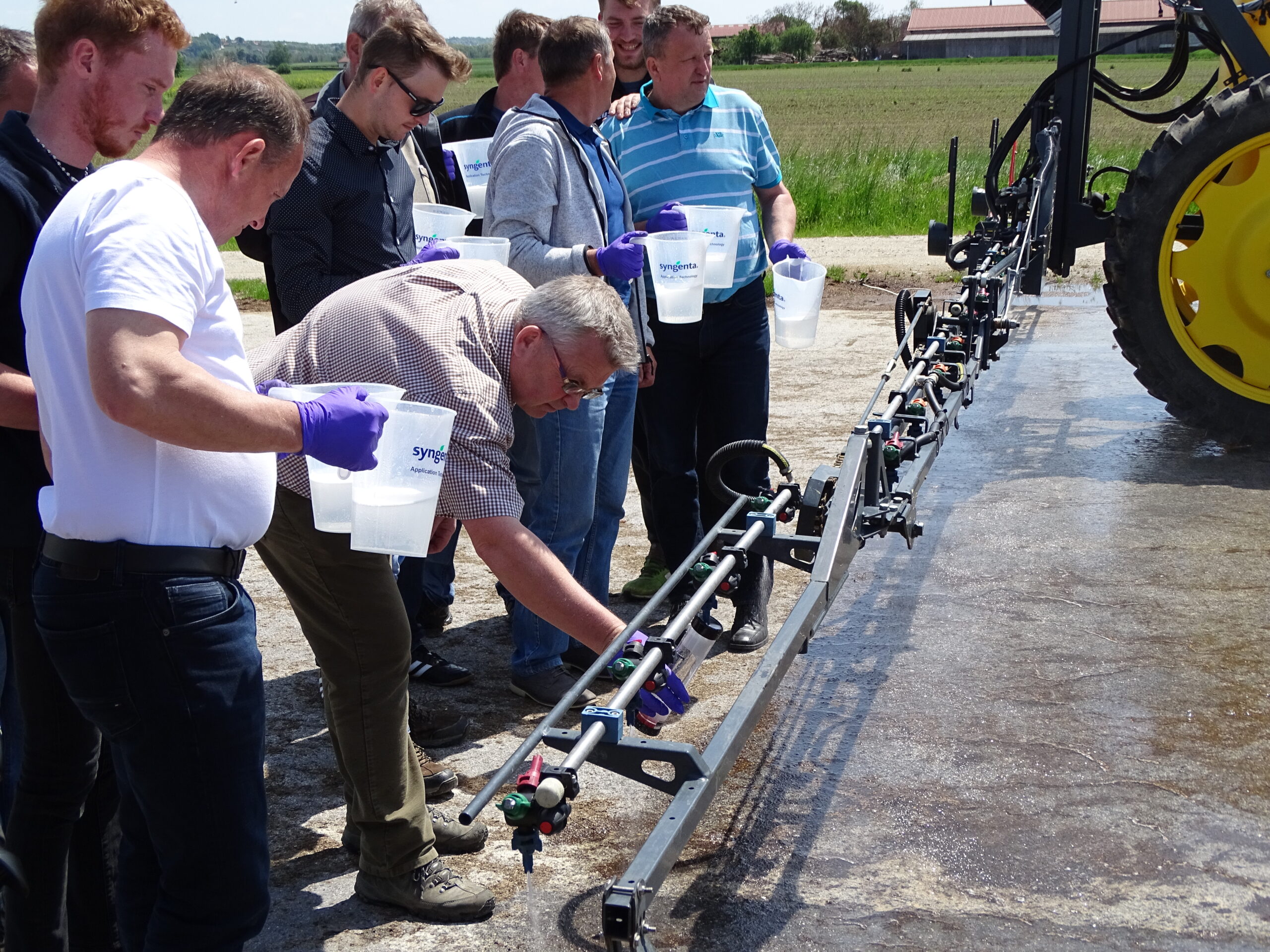 Izvedba umerjanja poteka po korakih, pri čemer potrebujemo nekaj osnovnih pripomočkov (štoparico, merilni trak, meter, kalkulator, beležko, palice za označevanje testne dolžine, merilni vrč, cevi za usmerjanje tekočine, mehko ščetko, ključ za nastavitev škropilnega kota šobe, lističe, ko so občutljivi na vodo).