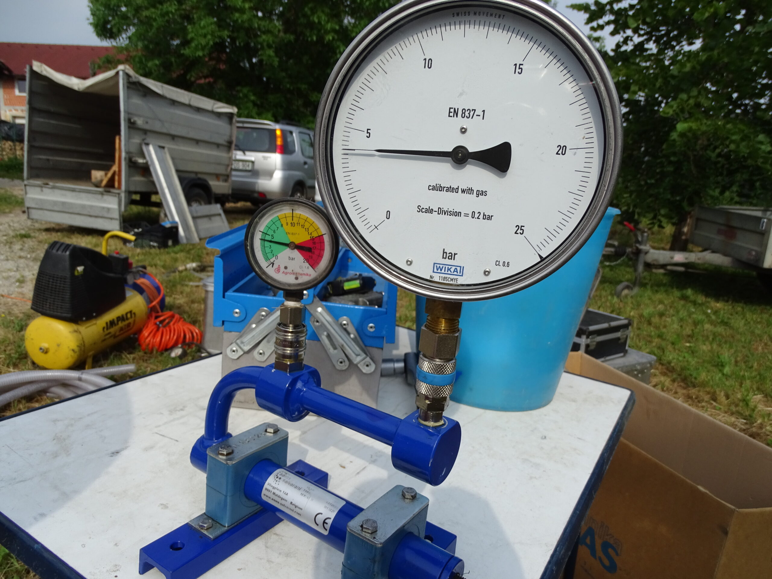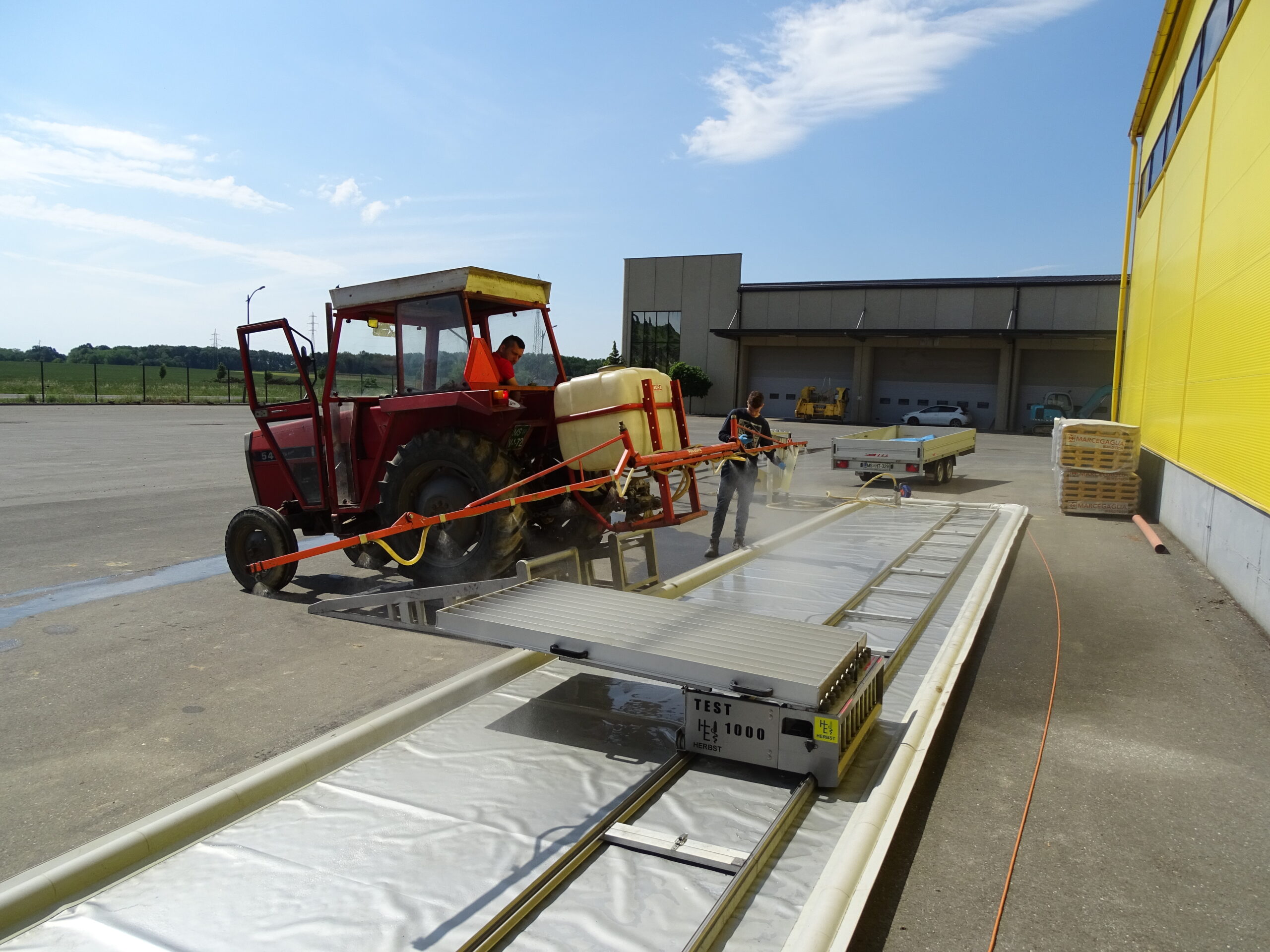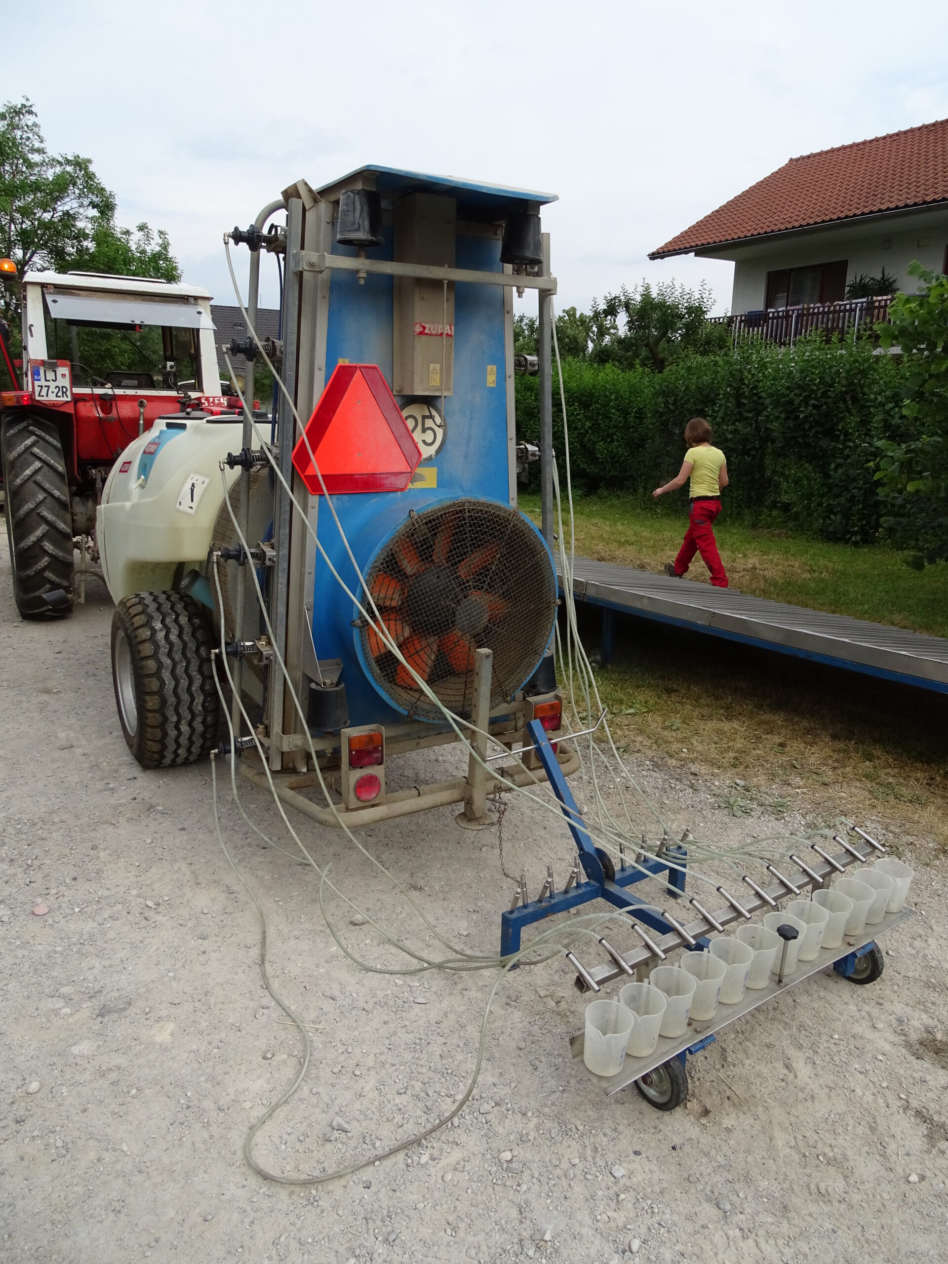 Izvedba umerjanja poteka po korakih, pri čemer potrebujemo nekaj osnovnih pripomočkov (štoparico, merilni trak, meter, kalkulator, beležko, palice za označevanje testne dolžine, merilni vrč, cevi za usmerjanje tekočine, mehko ščetko, ključ za nastavitev škropilnega kota šobe, lističe, ko so občutljivi na vodo).