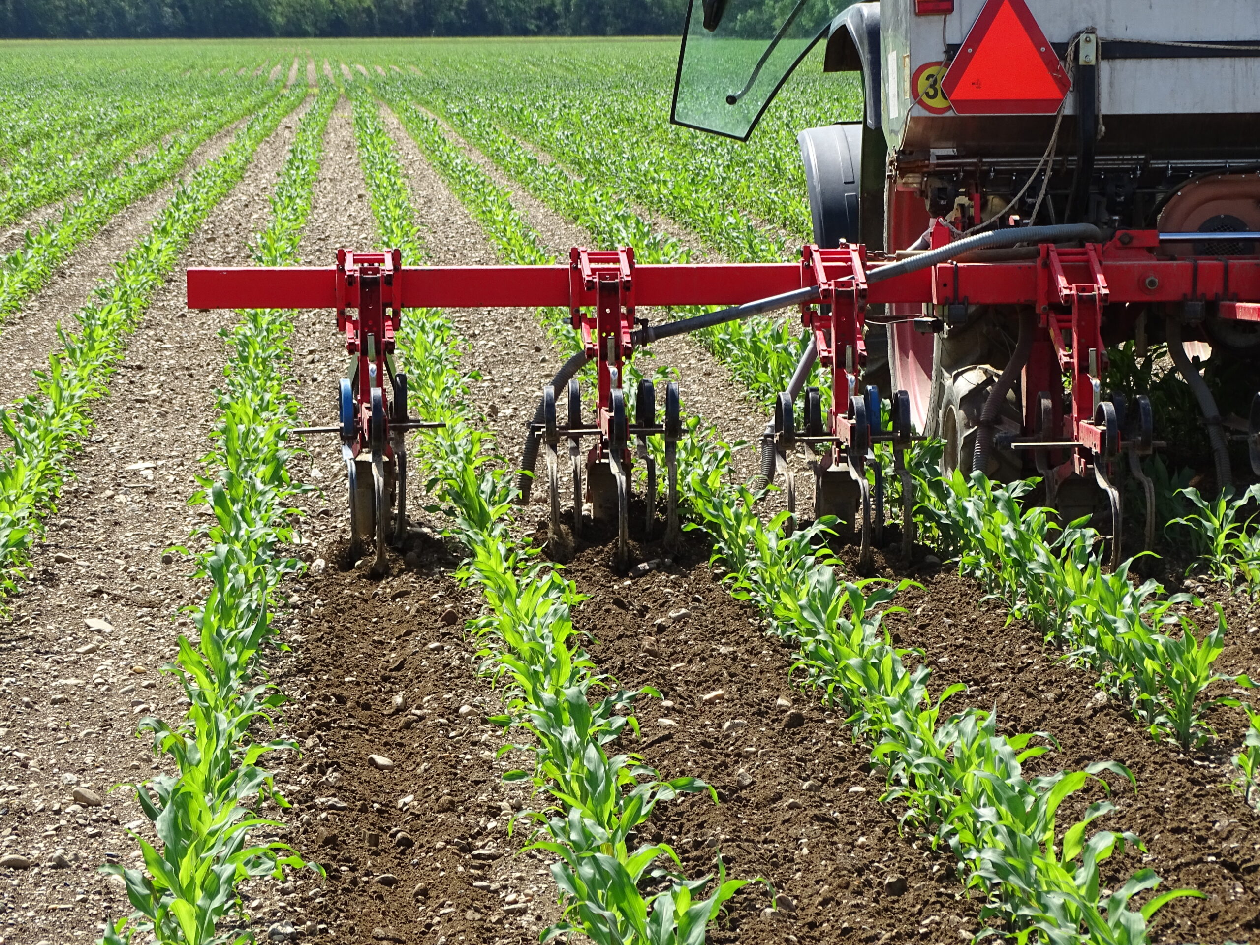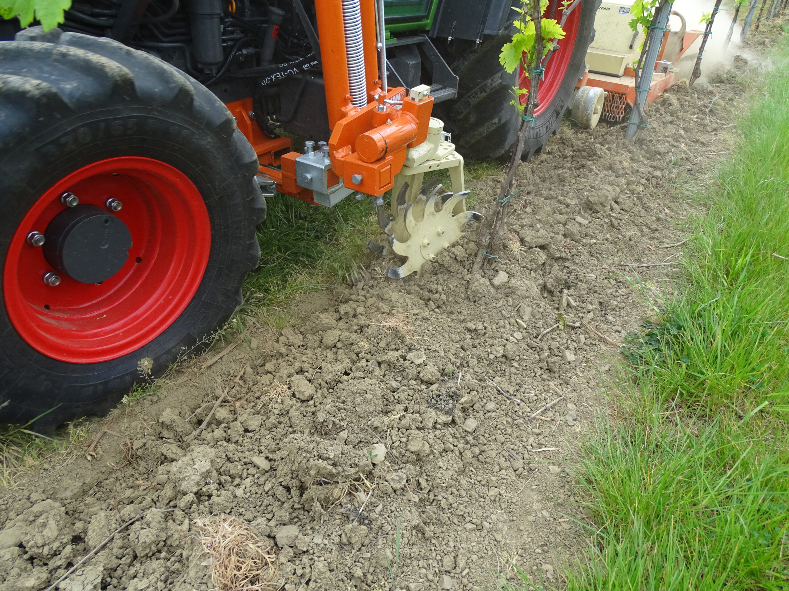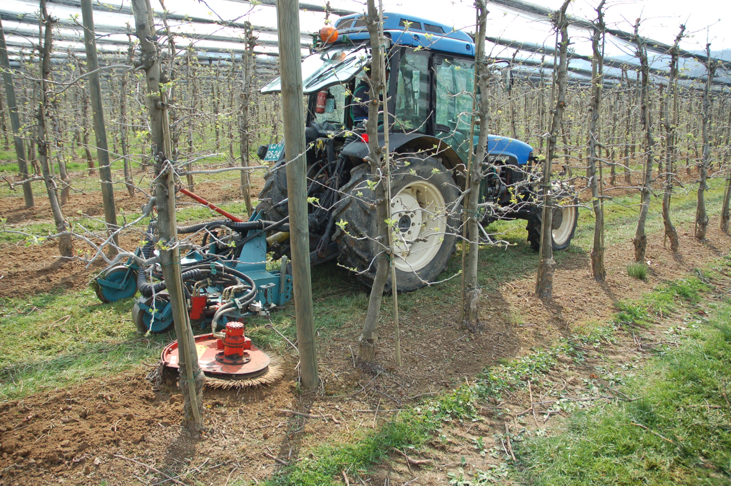 Pri uporabi mehanskih ukrepov je potrebna dodatna previdnost zaradi nevarnosti poškodb debla in koreninskega sistema dreves ali trte, ki lahko predstavljajo vstopno mesto za povzročitelje bolezni. V namakanih nasadih je treba paziti tudi na ustrezno namestitev namakalnih cevi, da ne pride do poškodb med mehansko obdelavo. Delovni elementi (sklopi) so pogosto opremljeni s tipali (tasterji), ki aktivirajo (hidravlični) odmik delovnih elementov ob dotiku tipal s steblom ali stebrom. Premik delovnih elementov nazaj v delovni položaj je najbolj pogosto izveden s pomočjo vzmeti. To povzroča relativno malo neobdelanega prostora ob samem deblu – stebru. Nekatere naprave kot so določene izvedbe ščetk ne potrebujejo odmikanja.