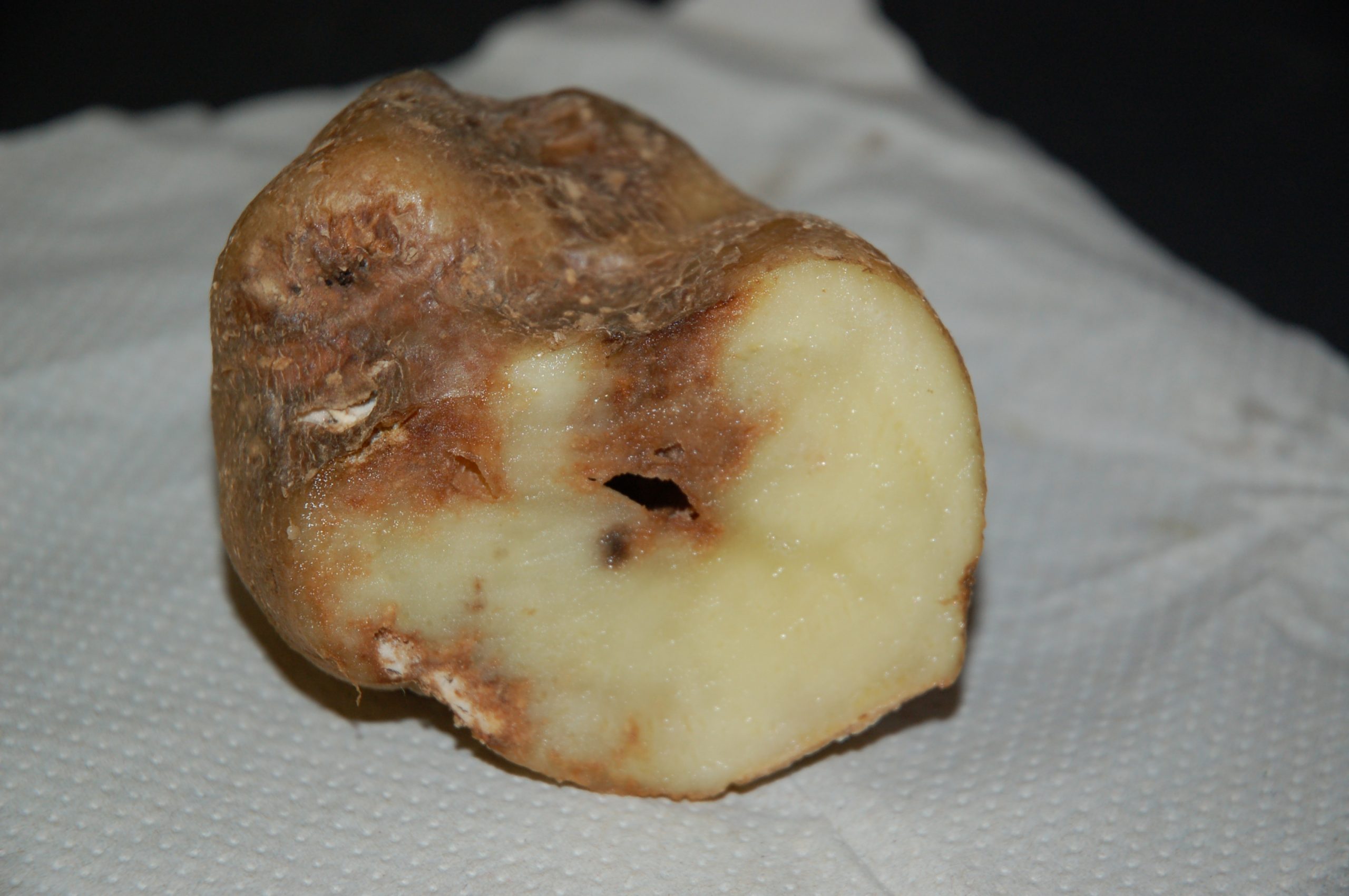 Če v nasadu najdemo plesen zraslo iz semenskega gomolja, škropljenje s fungicidi ne zadostuje. Tako rastlino moramo odstraniti iz nasada tako, da ne širimo plesni po nasadu: