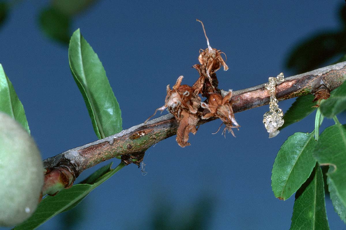 - Fitosanitarni ukrepi: Za zmanjšanje potenciala bolezni je potrebno odpadle in mumificirane plodove odstraniti iz nasadov, enako velja za okužene veje po rezi.