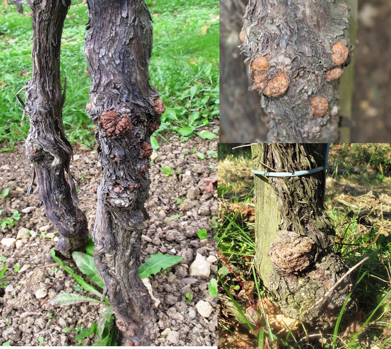 Bakterije iz rodu Agrobacterium (A. tumefaciens in A. vitis) povzročajo razvoj tumorjev na koreninskem vratu vinske trte. Bolezen je zelo razširjena po vsem svetu in povzroča težave predvsem v proizvodnji sadik, tako vinske trte kot ostalih sadnih in okrasnih vrst. Največ izgub je prav na račun pojava rakaste tvorbe oz. tumorja na cepljenem mestu. Bolezen v večini primerov ni usodna, a mlajše in občutljive rastline lahko ob stresnih pogojih razvijejo bolj izrazita bolezenska znamenja (t.j. večje tumorje), zaradi česar je ovirano prevajanje vode in hranil po rastlini, sledi slabša rast, manjši pridelek ali celo propad rastlin.