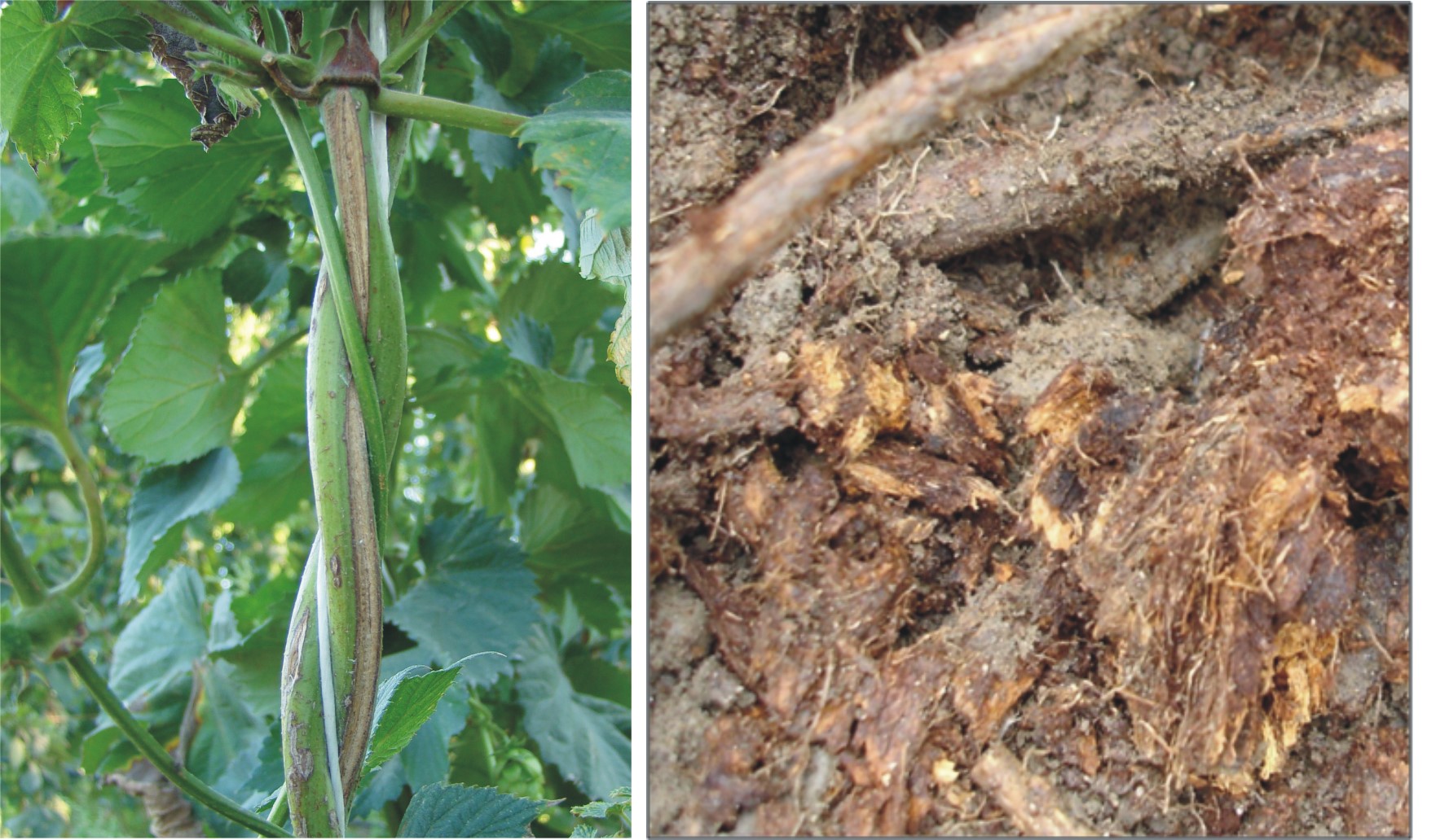 - Redno pregledovanje lastnikov hmeljišč in takojšnje obveščanje pristojnih služb ob najdbi sumljivih rastlin.